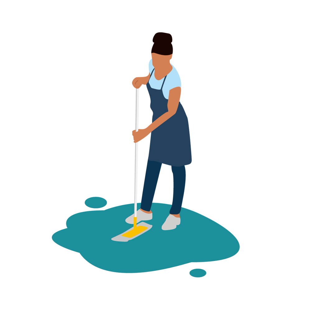 表層為耐磨保護層,不可上蠟,使用掃把、吸塵器、清水沾濕並擰乾的拖把清潔,油性污漬請使用中性清潔劑。